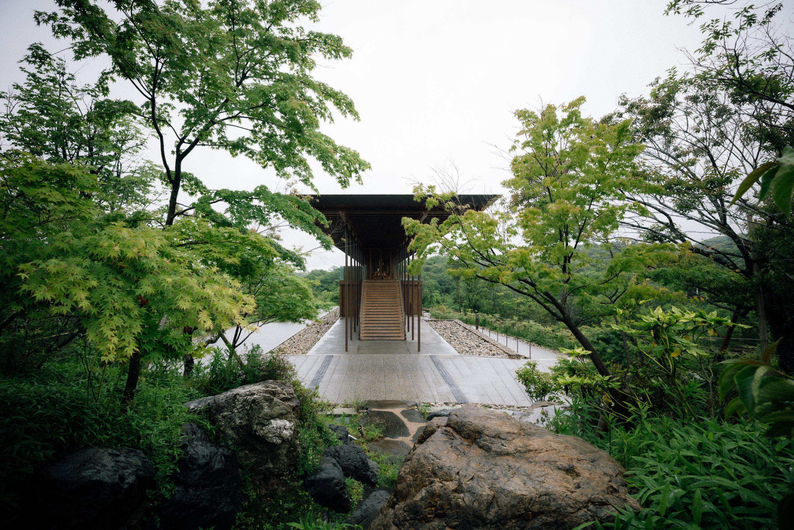 禅坊靖寧は360℃自然に囲まれた建築家の坂茂氏が手掛ける木造建築は、自然の中に溶け込みます。