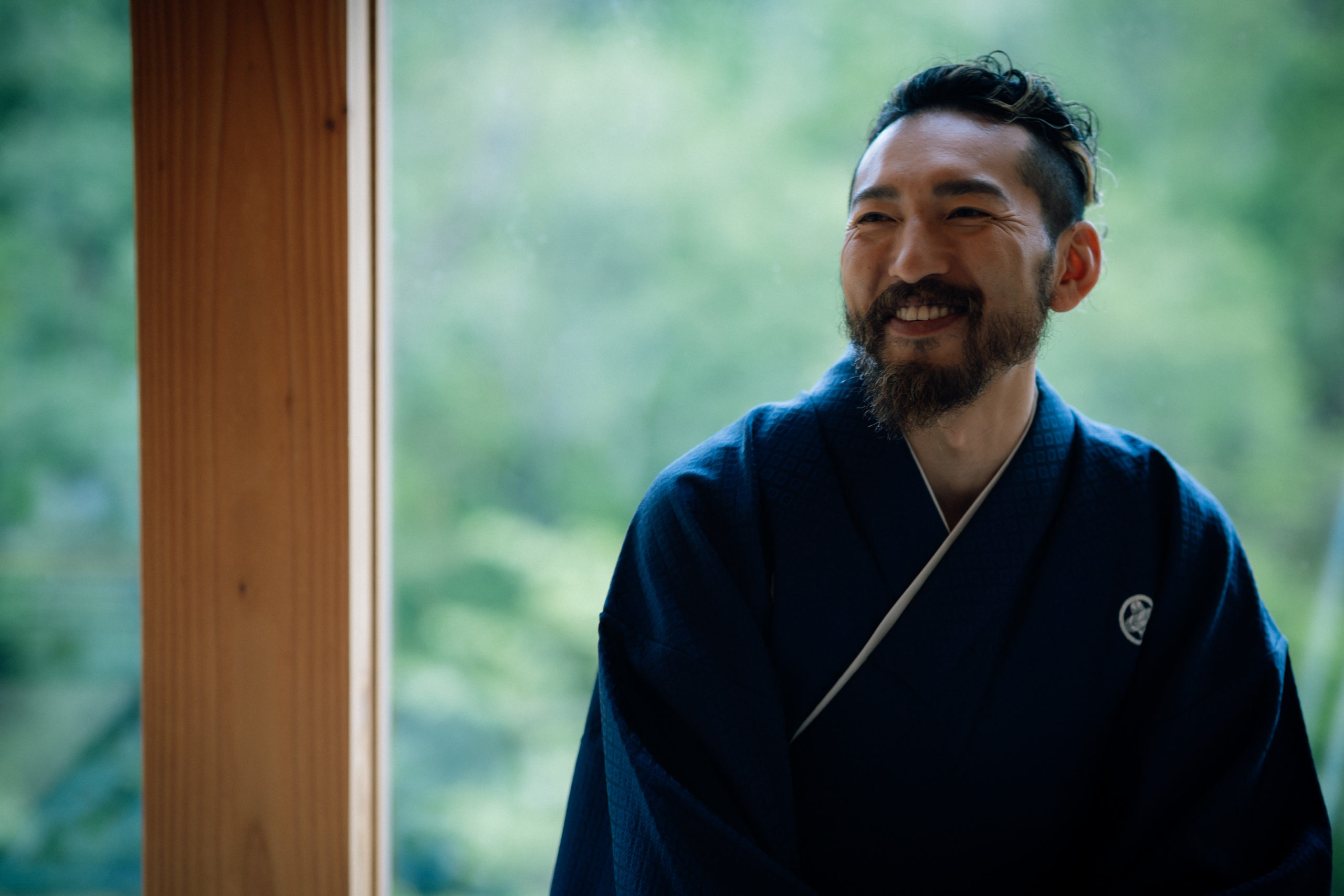 お部屋の大きな窓からは、淡路島の空気と光がたっぷりと差し込み、外との境界線が無いように感じます。室内にいても自然の中にいることを感じさせてくれる場所でお支度が始まります。